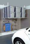 GarageExperts' ceiling storage units are great for the garage, basement, attic, closet, office, or any other room in need of storage. Our ceiling storage units are ideal for storing holiday decorations, luggage, coolers and other large bulky items. The units help increase the overall value of the home and neighborhood by allowing vehicles to park in the garage where they are intended to be. GarageExperts Overhead Storage systems are available in a high quality powder, coated white finish.